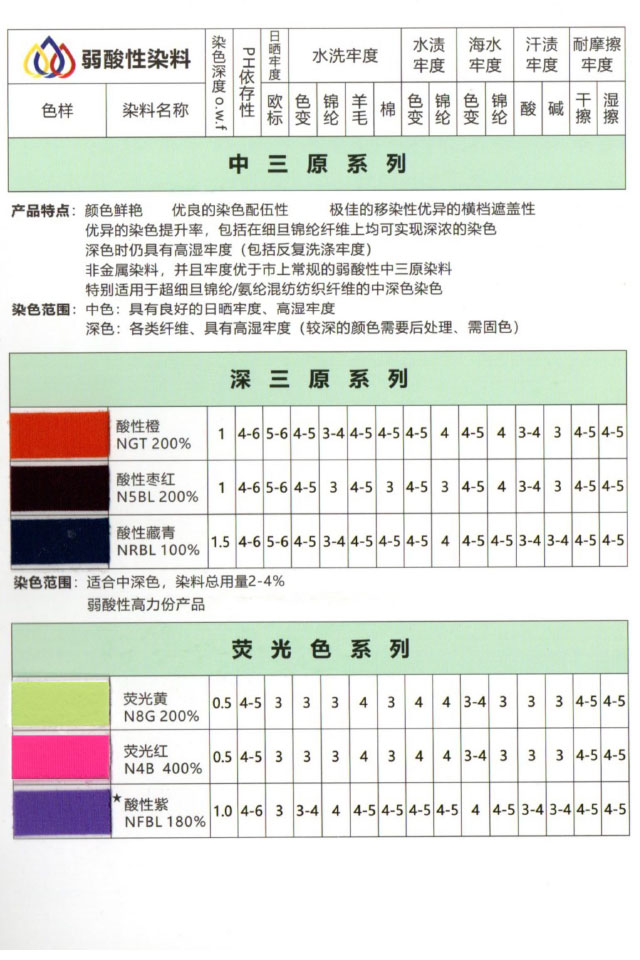高牢度分散染料作為合成纖維染色的核心材料,以分子結構小、不含水溶性基團為特征,需借助分散劑實現均勻染色。其技術特性聚焦于色牢度提升,涵蓋耐洗、耐光、耐摩擦、耐升華等多維度性能,采用五級制評級體系(耐光牢度為八級),級數越高代表性能越優。例如,蒽醌結構染料因分子穩定性高,耐曬、耐熱性能顯著;偶氮…
